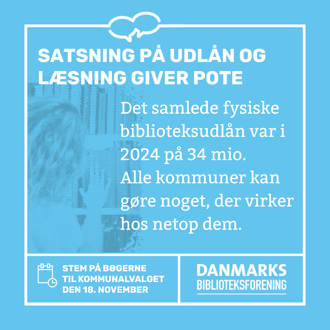 Det samlede fysiske udlån var i 2024 på 34 mio. Det svarer på landsplan til 5,7 udlån per borger. Alle borgere altså. Ikke kun aktive lånere, og stigningen ses både i store som små kommuner. Alle kommuner kan gøre noget, der virker hos netop dem.