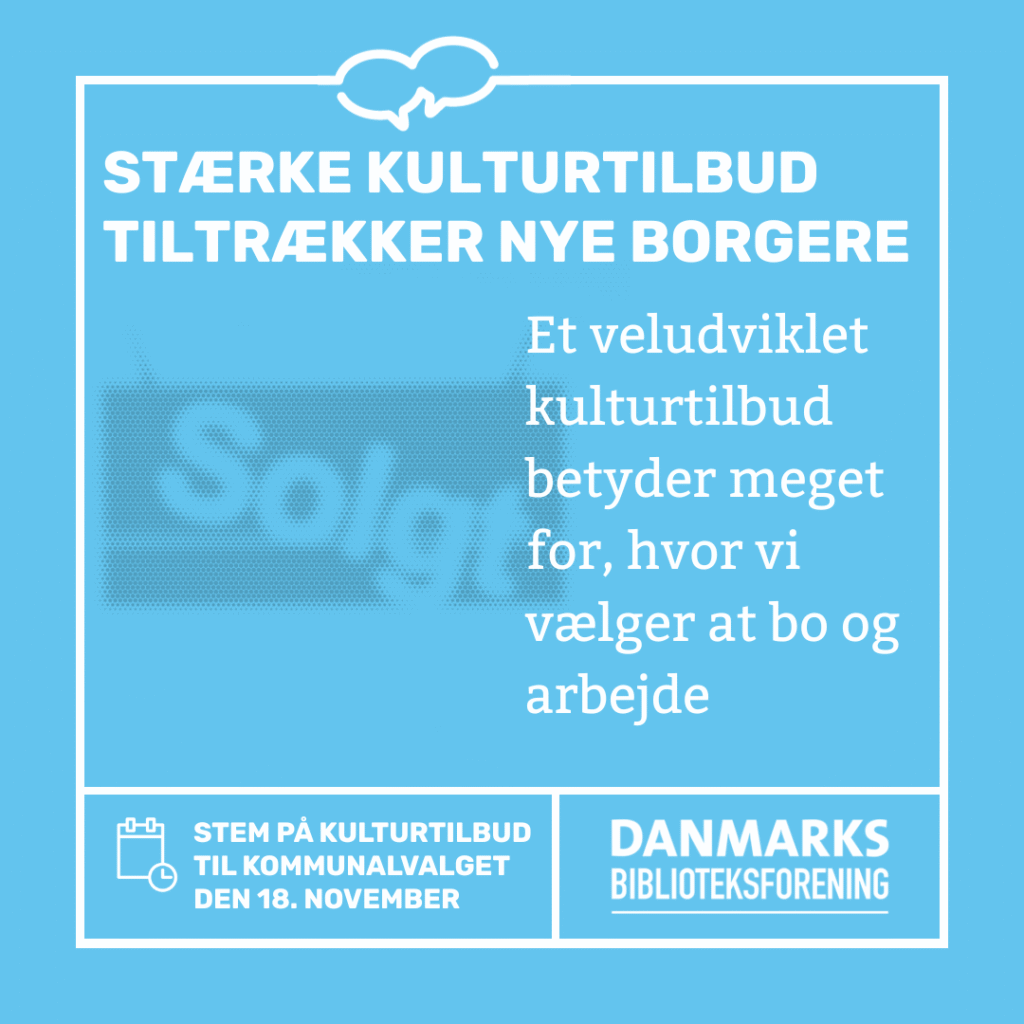 Undersøgelser viser, at et veludviklet kulturtilbud i kommunen betyder rigtig meget for folks lyst til at bosætte sig, så vil man tiltrække de gode skatteborgere, så sørg for at kommunens kulturtilbud, herunder biblioteket, er veludviklet og tidssvarende.